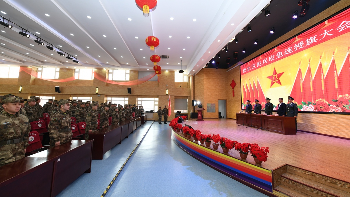 (图为松北区“陈荣久民兵应急连”授旗大会。常智科摄)