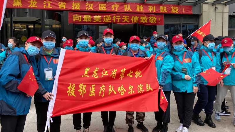 (图为参加援鄂医疗队的哈尔滨市民兵胜利凯旋。常智科摄)