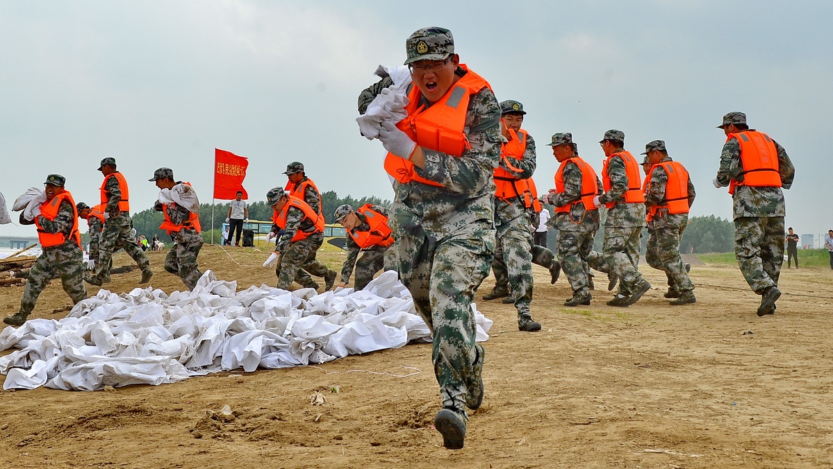 (图为哈尔滨市民兵在组织防汛演练。邵国良摄)