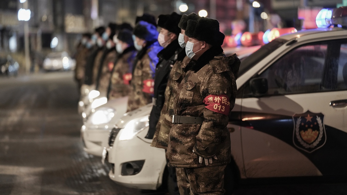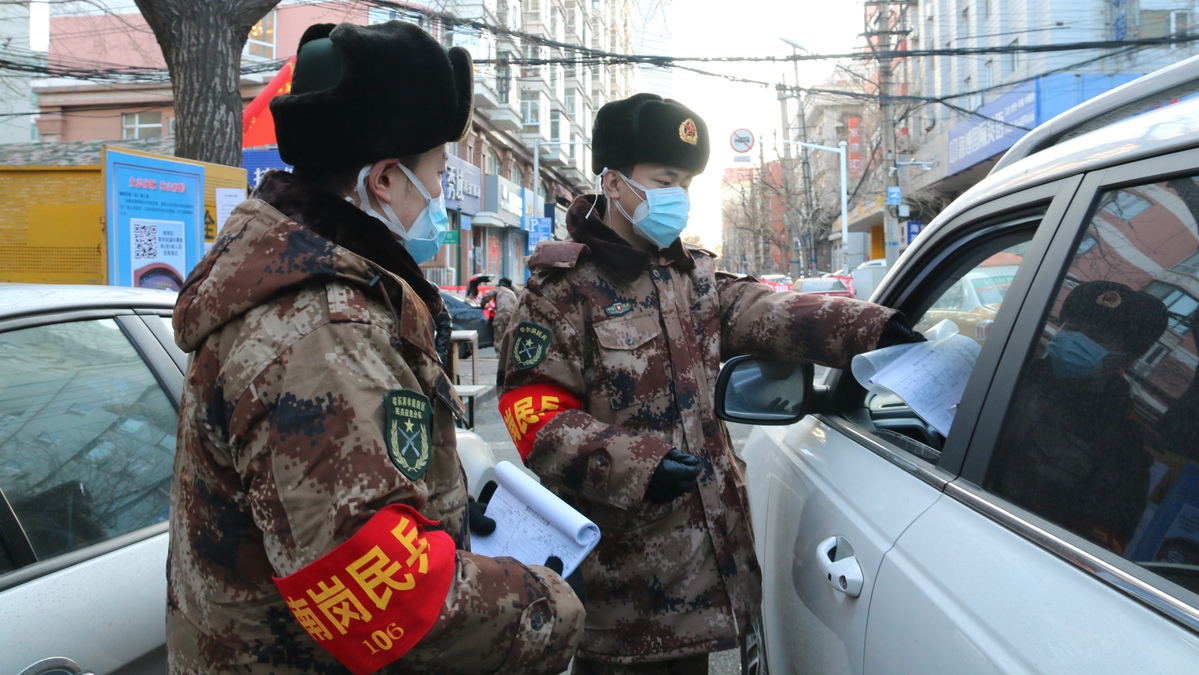 (图为道外区民兵在执行抗疫联合执勤任务。陈南摄)