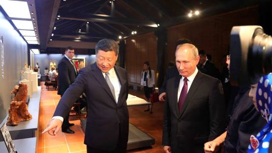 (图为习近平主席向普京总统介绍影雕作品。 厦文供)
