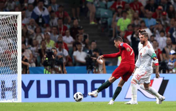第一场比赛,c罗用帽子戏法,帮助葡萄牙3-3逼平夺冠热门西班牙。那场比赛,c罗几乎以一个人的力量抗衡西班牙一支球队,没有他的强势表现,葡萄牙必输无疑。