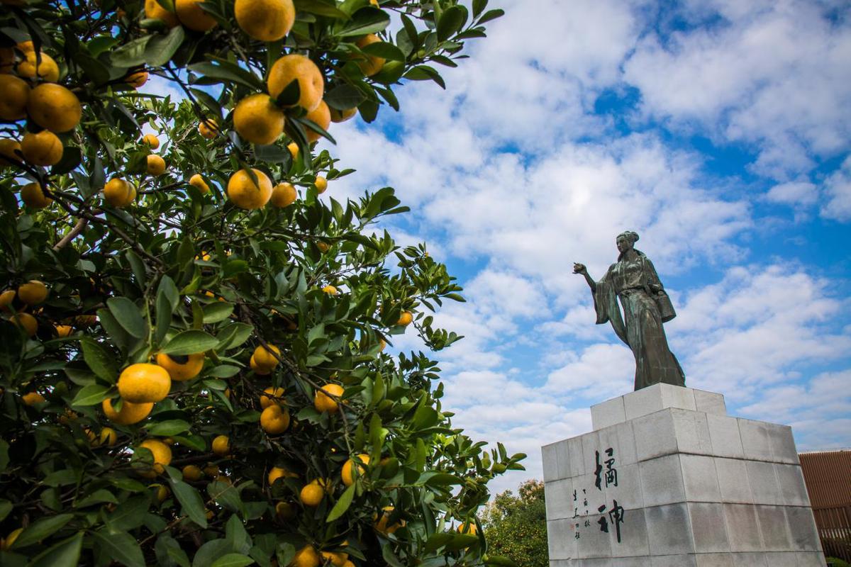 在中国柑橘博览园,一尊颇具神韵的橘神雕塑矗立其中。远远望去,只见橘神长身玉立,衣袂飘飘,在绿意葱茏的万亩柑橘林的映衬下,传神地再现了为黄岩人民送来橘种的情形,也体现了黄岩悠久的橘文化历史。
