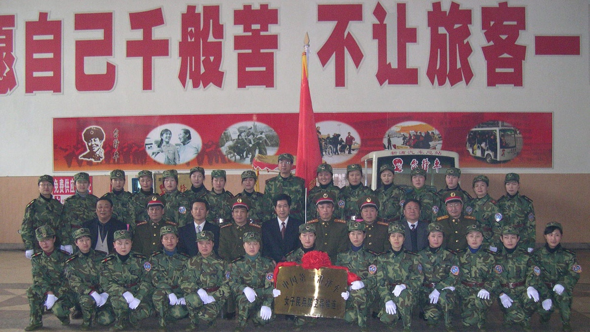 (图为2007年“雷锋车”女子民兵排整组为“中国第一雷锋车”女子民兵防空导弹连时的合影。资料)