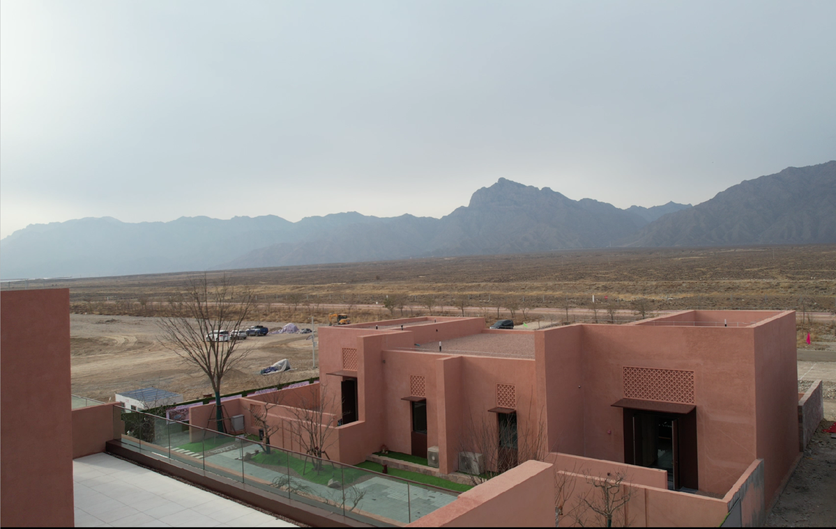 我当时过来选址那一天,正好是十一月份,气候跟今天很像。贺兰山上已经没什么绿色了,周边的植物都枯了,山里很冷,看上去很冷峻,但我感觉是山下应该有一个温暖的地方,比如说就是一排小房子,然后稍晚一些会亮起暖色光,就像是在山下的人家一样,我觉得我要在这创造一个温暖的地方,然后大家可以住宿在这,可以跟山产生对话。