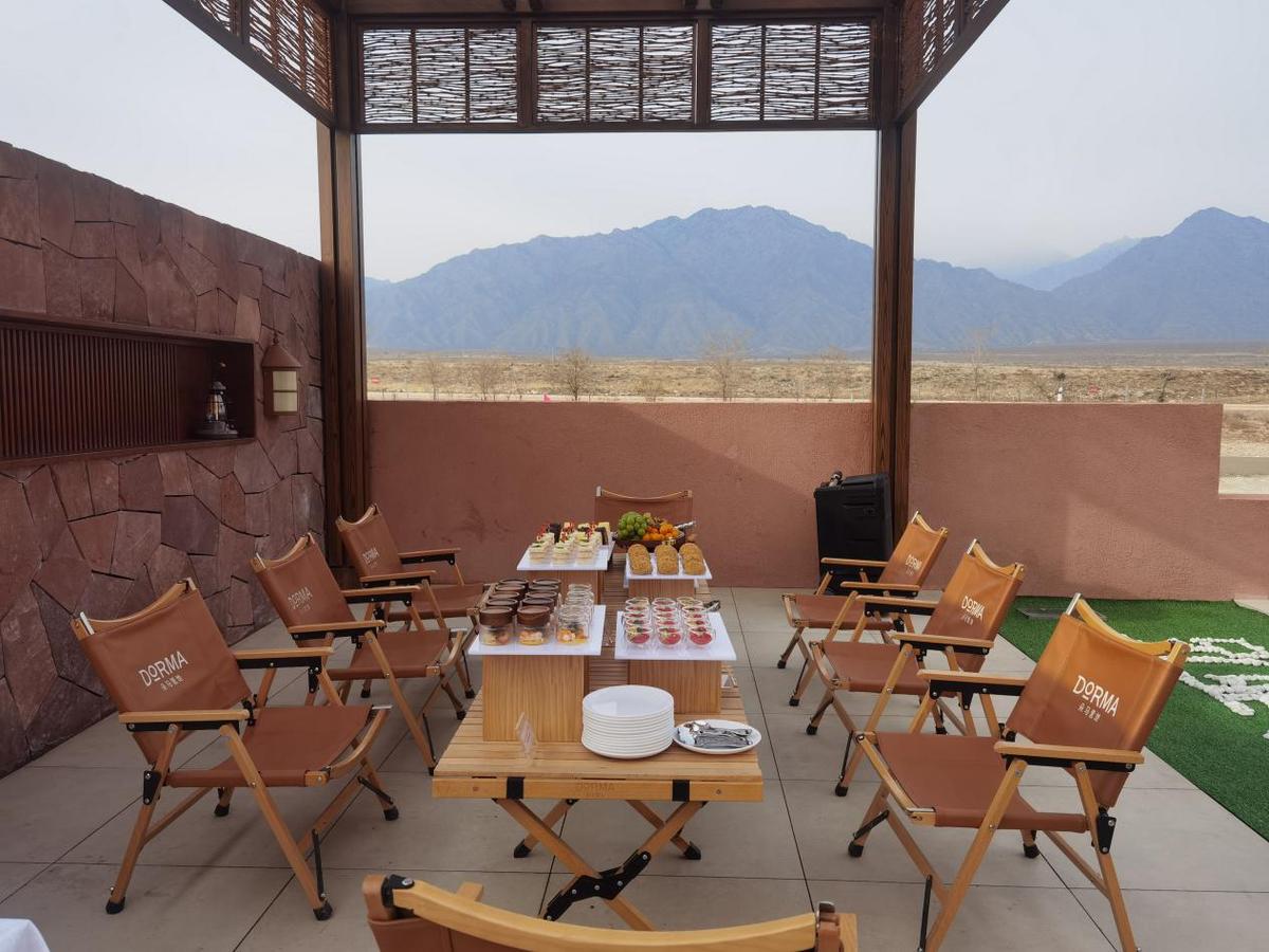 他带我走进刚建好的图兰朵葡萄酒小镇首个项目——安漠度假酒店样板间,60㎡的超大观山庭院,在以巍巍贺兰山背景的绝美场景中,显得格外温暖,令人忍不住就想留下来。