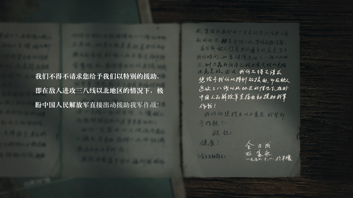 该片展现谈判的过程十分艰难,长达747天。毛泽东在直接领导和指挥抗美援朝的同时,也直接领导和指挥了朝鲜停战谈判并提出了应对之策。“和谈中最基本的原则问题,是限期撤出朝鲜境内一切外国军队;其次“是以三八线为界,恢复1950年6月25日前的状态”;“我们坚持一切外国军队撤出朝鲜是有理的;以三八线为界是有节的;争取提早结束战争,于朝、中两国人民是有利的。”毛泽东同志制定的这一谈判战略使中朝处于有利位置。