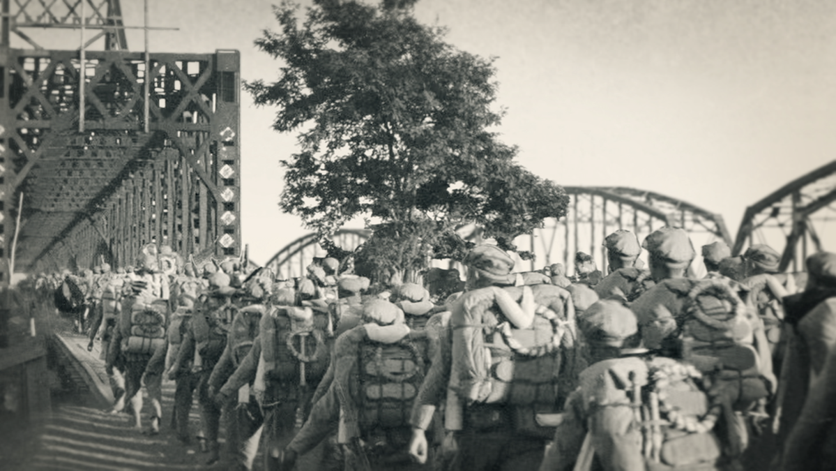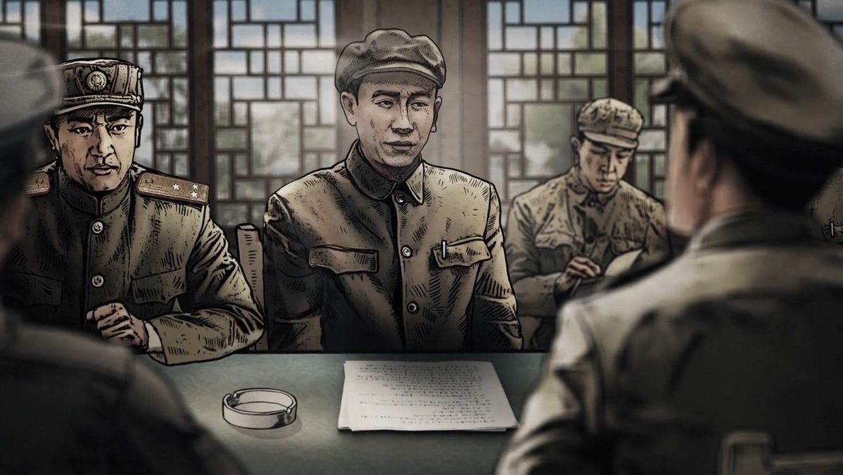 朝鲜停战谈判大部分过程不允许媒体记录,摄制组采用了cg动画的方式对历史事件进行展示和补充,其中动画部分以真实的照片和史料为基础底稿进行绘画。写实类的绘画风格,运用黑白线素描技法起线稿,加以低饱和度颜色罩染,低饱和度的画面调性可给观众带来硬朗、庄重、沉稳的艺术感受,同时不乏厚重的历史气息。这一技术手段的使用,也落实了总台领导提出的“技术 艺术”的守正创新和满屏皆精品的创作要求。