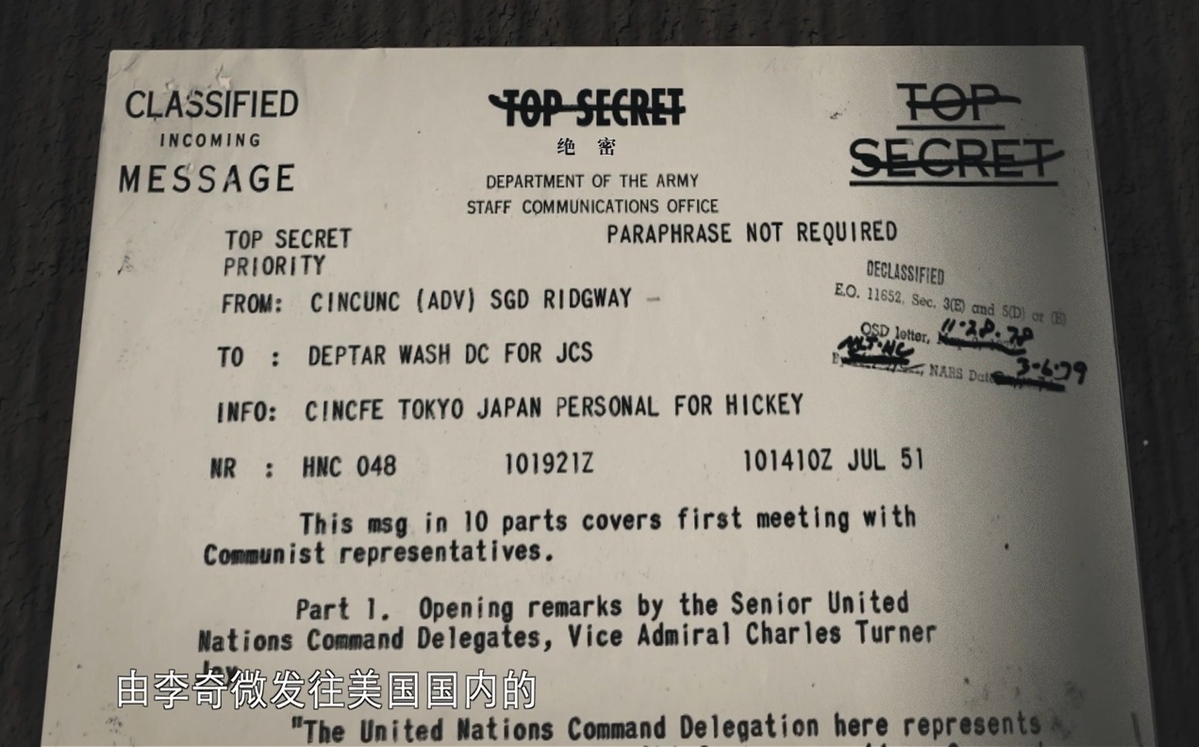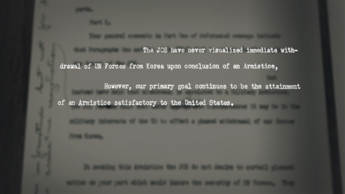 摄制组历时近一年时间,在国内和海外全面收集和挖掘有关朝鲜停战谈判的各种史料,包括视频影像资料、历史照片和图片、新闻媒体报道原文、历史人物的回忆录原文以及大量解密的电报和档案。其中尤为珍贵的是,收集了三百余份当年所谓“联合国军”和美国政府的绝密电文,这些绝密电文在中国国内大部分也是首次披露,甚至解答了一些历史疑问,对未来抗美援朝研究也提供了新的史料和视角。对观众来说,这些珍贵的一手原始资料在节目中的呈现,对论证我方观点,看清美国真实面目产生了良好的作用,通过最直观的事实和证据,起到了正面的宣传效果。