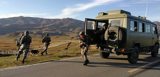 (图为边防战士王鑫的雄姿。杨应森摄)