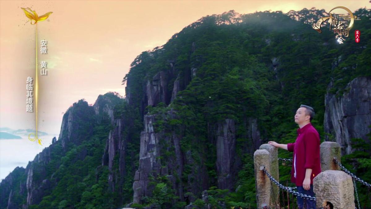 康震老师在秀美壮观的黄山顶上排云亭,背景是天下奇秀的黄山,古人云“五岳归来不看山,黄山归来不看岳”,可见黄山之绝美。在他身后的是难得一见的景象,云海茫茫,晚霞夕照,黄山有了云海,宛如一条条游龙。他出了题目,哪一句是描述黄山流云的诗词,(清)袁枚《宿黄山狮子林》“清凉台高迥绝伦,我登正值山铺云。一匹布将天地裹,千条练许山灵分。”形象地描述了这一壮丽景象。让观众对祖国山河之美顿生热爱之情。