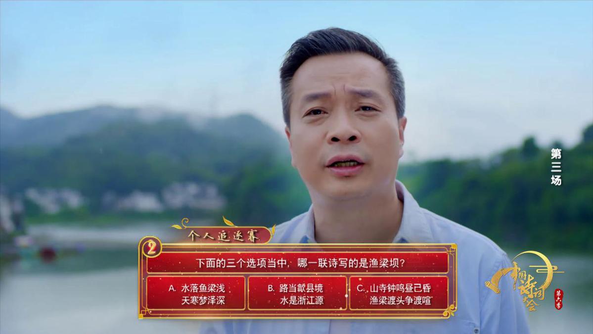 又如康震老师在安徽歙县,背景是新安江,有一座著名的水坝,叫做渔梁坝,建于唐代,距今已有一千多年历史,渔梁坝也被称作江南都江堰,江湾处还有著名的紫阳书院,可见这个地方是自然与人文荟萃之地。他出有关鱼梁坝的题目,让诗词爱好者深刻理解了明代诗人程敏政所写的《渔梁坝登舟至浦口初闻雷饯者相贺》一诗中“路当歙县境,水是浙江源”。浙江因多江汇聚而妩媚多姿。节目把人文地理和诗境融为一体,开眼界,增审美,令人更加陶醉于诗情画意之中。