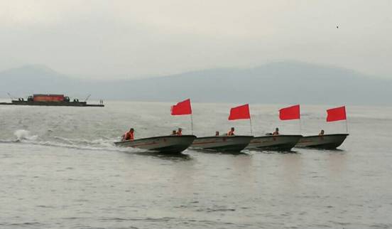 图为官兵们作水上编队、水上救援演示的场面。 林立 摄