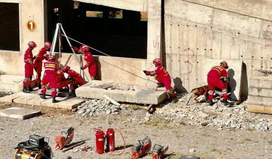 图为官兵们作地震救援演练的场面。 林立 摄