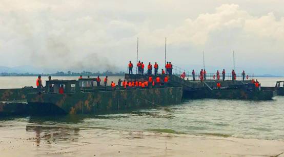 图为官兵们作水上浮桥架设演示的场面。 林立 摄