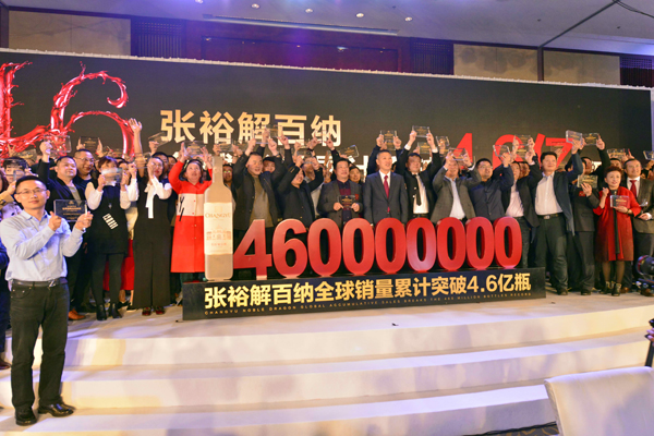 张裕与全国经销商共贺解百纳累计销量突破4.6亿瓶。(摄影 鞠传江)