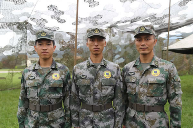 铁血哥:先看一下他们三人的合影吧。左1是上士刘伟锋,中间是上士沙玛世格,右1是三级军士长陈勇。