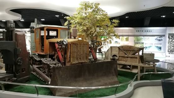 (图为纪念馆陈设的当年开荒时用过的农具。杨应森摄)