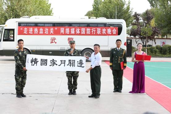 70多年前,茅盾先生曾写过《白杨礼赞》,讴歌中国人民坚强不屈的精神:“它有极强的生命力,磨折不了,压迫不倒。”在执勤二中队举行的军民联欢会上,我为二中队赠送了一幅由书法家吴培坤先生专门为此次活动书写的“边关月·家国情”的横幅。同时,我又为戍边战士们演唱了一首自己的保留曲目《小白杨》:“小白杨呀小白杨,也穿绿军装,同我一起守边防……”