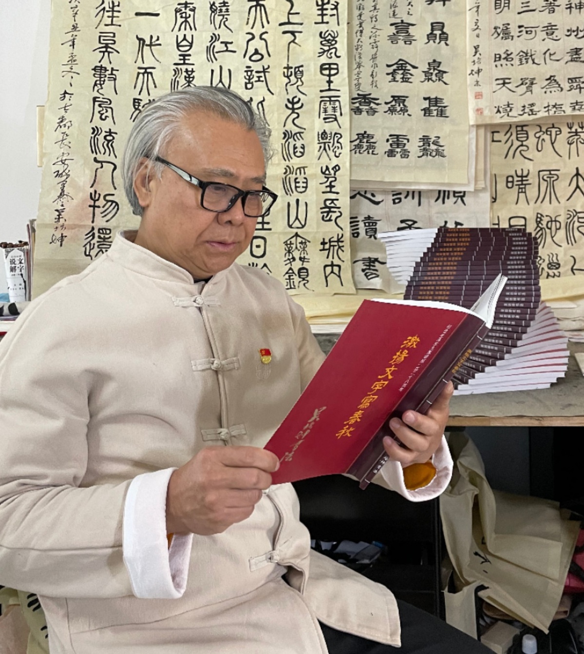 由陕西省西安市未央区书画协会主办、未央区文化馆承办的“激扬文字写春秋”——纪念毛主席《在延安文艺座谈会上讲话发表》80周年吴培坤书法展于23日上午,在西安市未央区文化馆隆重举行。