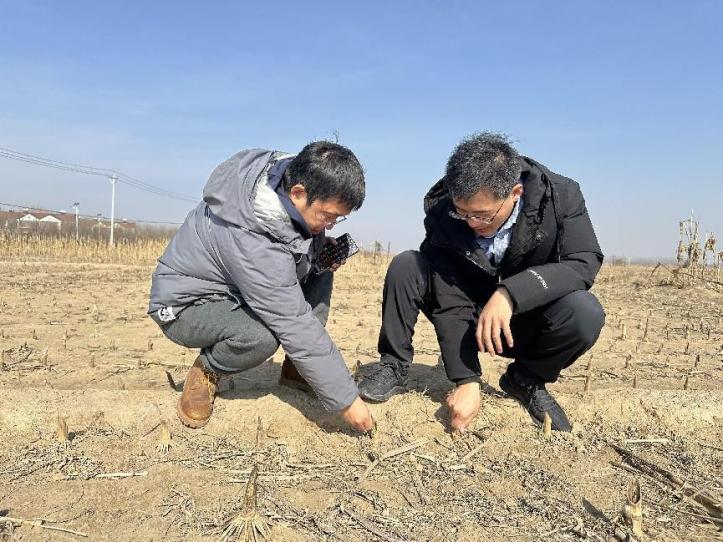 这进一步激起了我的好奇,也坚定了我继续追寻的决心。虽是大年初二,周围的地块中已经有些闲不住的老年农人下地劳作。我去找其中两位聊聊天,了解到这块地经过初步整治,盐度降低不少,小麦等有一定盐碱耐受度的作物已经可以生长。