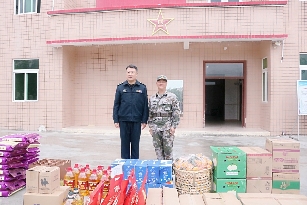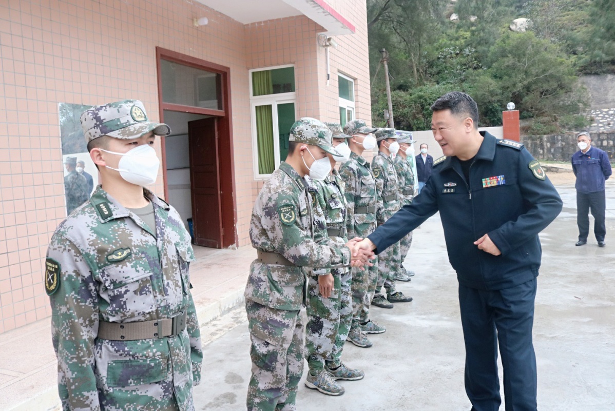(中共汕头市委常委、汕头警备区政委张宏俊[左] 在新春佳节,专程到哨所看望郑燕武等哨兵并送去慰问品。刘庭海 摄)