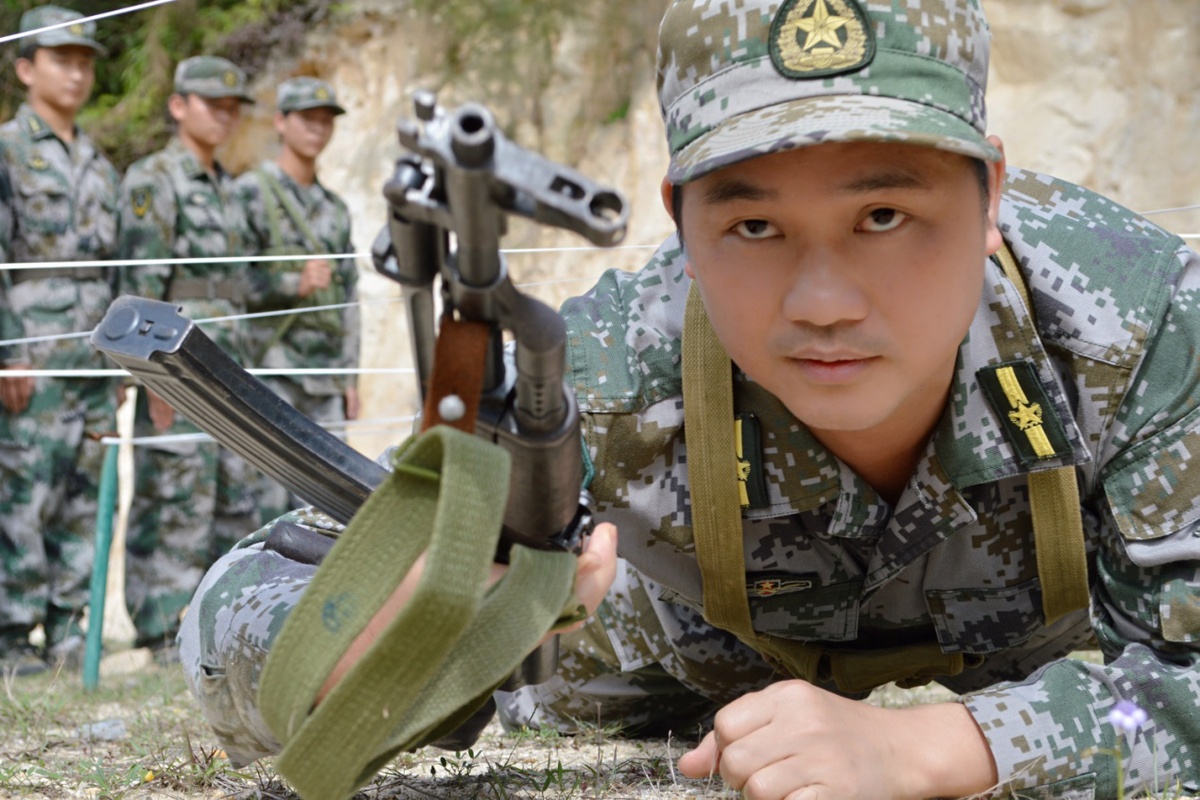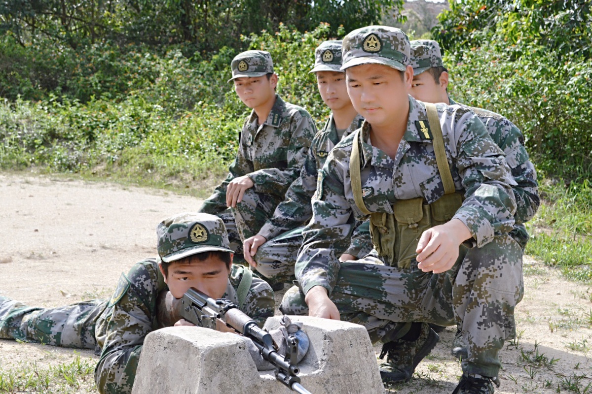 (图为郑燕武[右] 在辅导哨兵射击训练。张泽锐 摄)