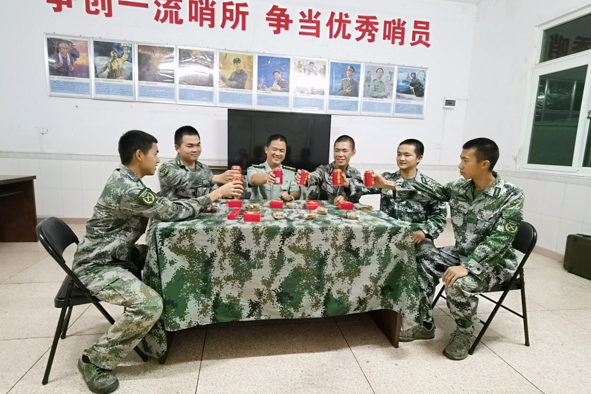(每逢节假日, 郑燕武自已掏腰包购买一些食品在哨所与哨兵们一起欢聚。杨应森 摄)