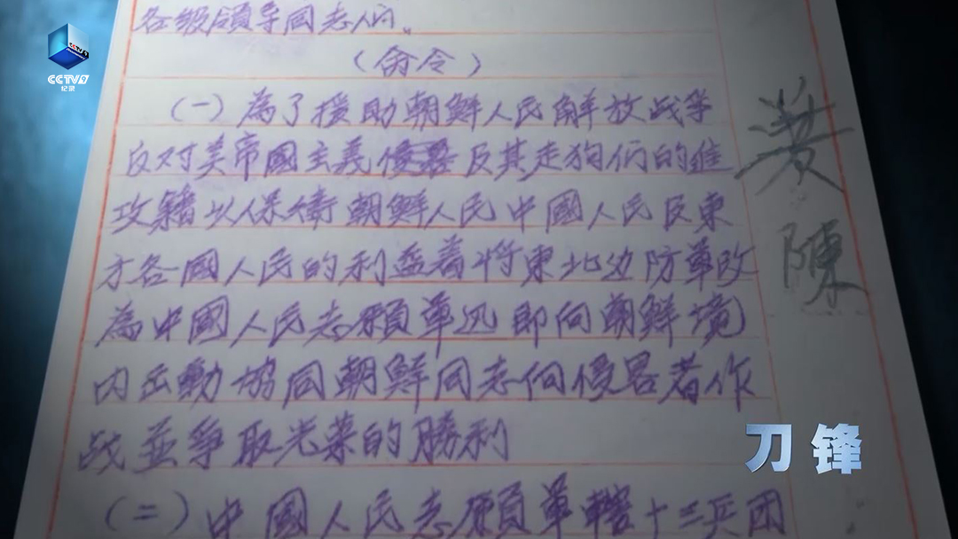 为纪念中国人民志愿军抗美援朝出国作战70周年,由中央广播电视总台摄制的6集大型纪录片《刀锋》,于26日起在央视纪录频道播出。该片分为《卫国刀鸣》《跨海过江》《锋芒所向》《冰天刀寒》《搏刃长津》《雪白血花》6集,每集50分钟,聚焦再现了二次战役在东部战线中国人民志愿军第9兵团和美军第10军之间发生的一场大战,史称“长津湖之战”。记录在茫茫冰原上零下三十多摄氏度又没有御寒冬衣的环境下、在武器装备处于绝对劣势的情况下,我志愿军将士浴血奋战取得的伟大胜利。