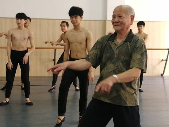 (图为年近八十岁的拍胸舞国家级代表性传承人郭金锁老人正在辅导学生跳拍胸舞。杨应森 摄)