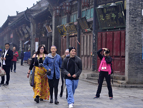 漫步在平遥街头的外国旅游者。鞠传江摄影
