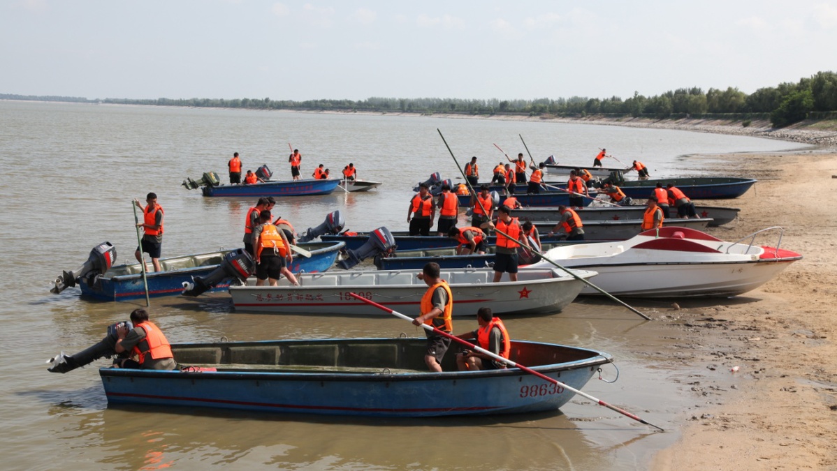 盘锦军地联合组织全市民兵操舟手集训,提高民兵队伍遂行防汛任务能力。摄影:周晓伟