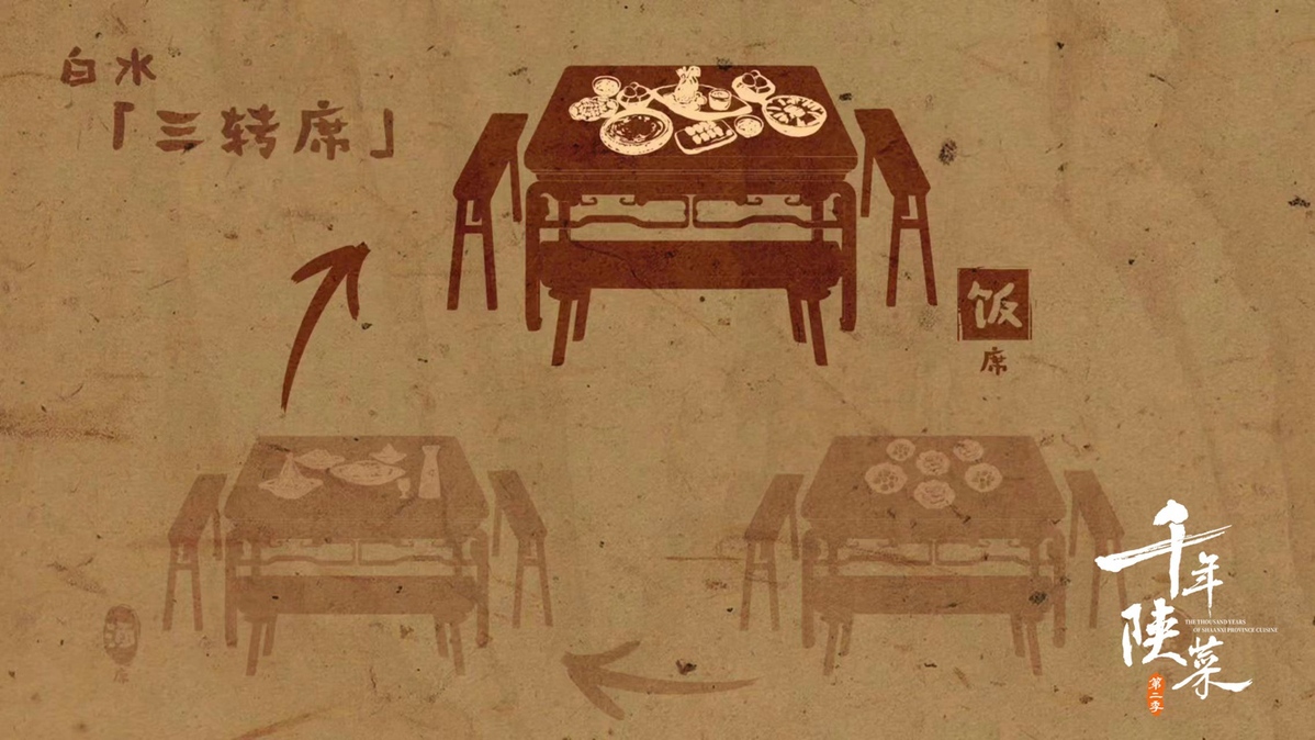 其次,揭示了陕菜深厚的底蕴和丰富的文化内涵。作为中国味道的代表,陕菜的文化内涵大有乾坤。如片中按照白水的习俗,老人高寿,一定要吃本地的三转席,子女才算孝子顺孙,老人才算德高福厚。三转席转中有序,转中有礼,转中有亲情孝义。在中国,宴席从来都不仅仅为了吃饭,从周公制礼的那一刻起,宴席就有教化乡民,尊老敬长之义。西府十三花由十三道凉菜和十三道热菜组成,十三为“九”和“四”之合,当地民俗视以“九”为“天”,以“四”为“地”,“十三花”寓意天地和谐、富贵吉祥。作为中国礼食文化的发祥地,西府十三花带有浓厚的乡饮酒礼的痕迹,讲究的也是喜庆团圆、仁和礼序。古代周天子以食制礼,天子的规格九鼎八簋,陕北人延续了这一习俗,八大碗就成了许多陕北老百姓一生中最值得回味的高档宴席。不管是蜀河的八大件,神木八大碗,延安老八碗,还是白水的三转席,每一桌宴席都记录着人情冷暖和历史兴衰,每一桌宴席也都意味深长,多姿多彩。宴中滋味多,席上乾坤大。