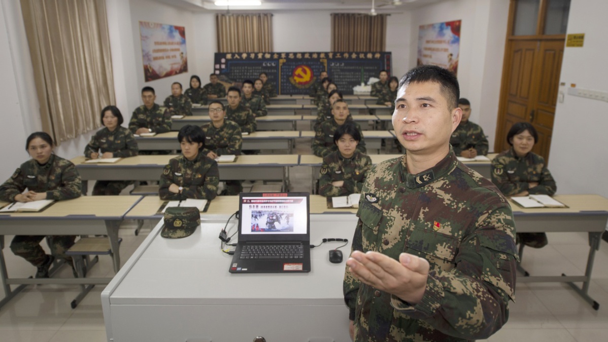 2020年11月的一天,国防科技大学信息通信学院试验训练基地的讲台上,一位佩戴四级军士长肩章的中年军人,正在给数百名参加集训的中高级士官授课。