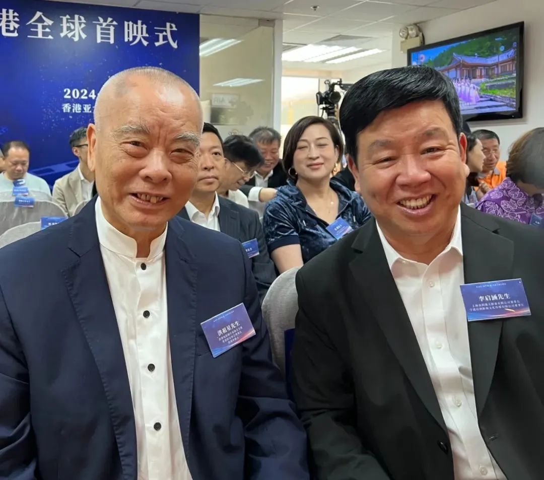 香港电影制片家协会主席、香港影业协会理事长洪祖星先生(左)与宁波启润影视文化传媒有限公司、上海众润逸夫影业有限公司董事长李启涵先生(右)在首映式现场